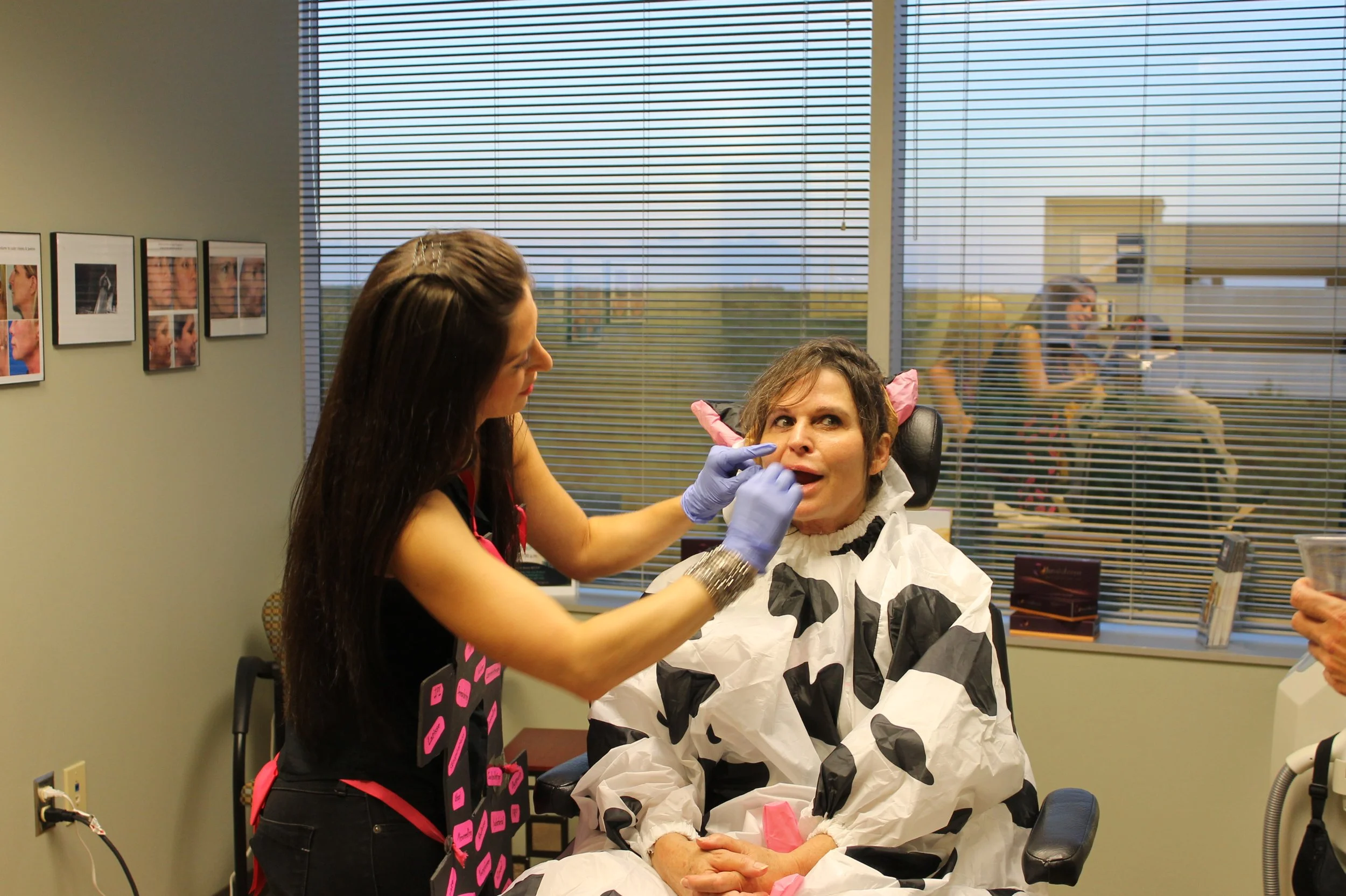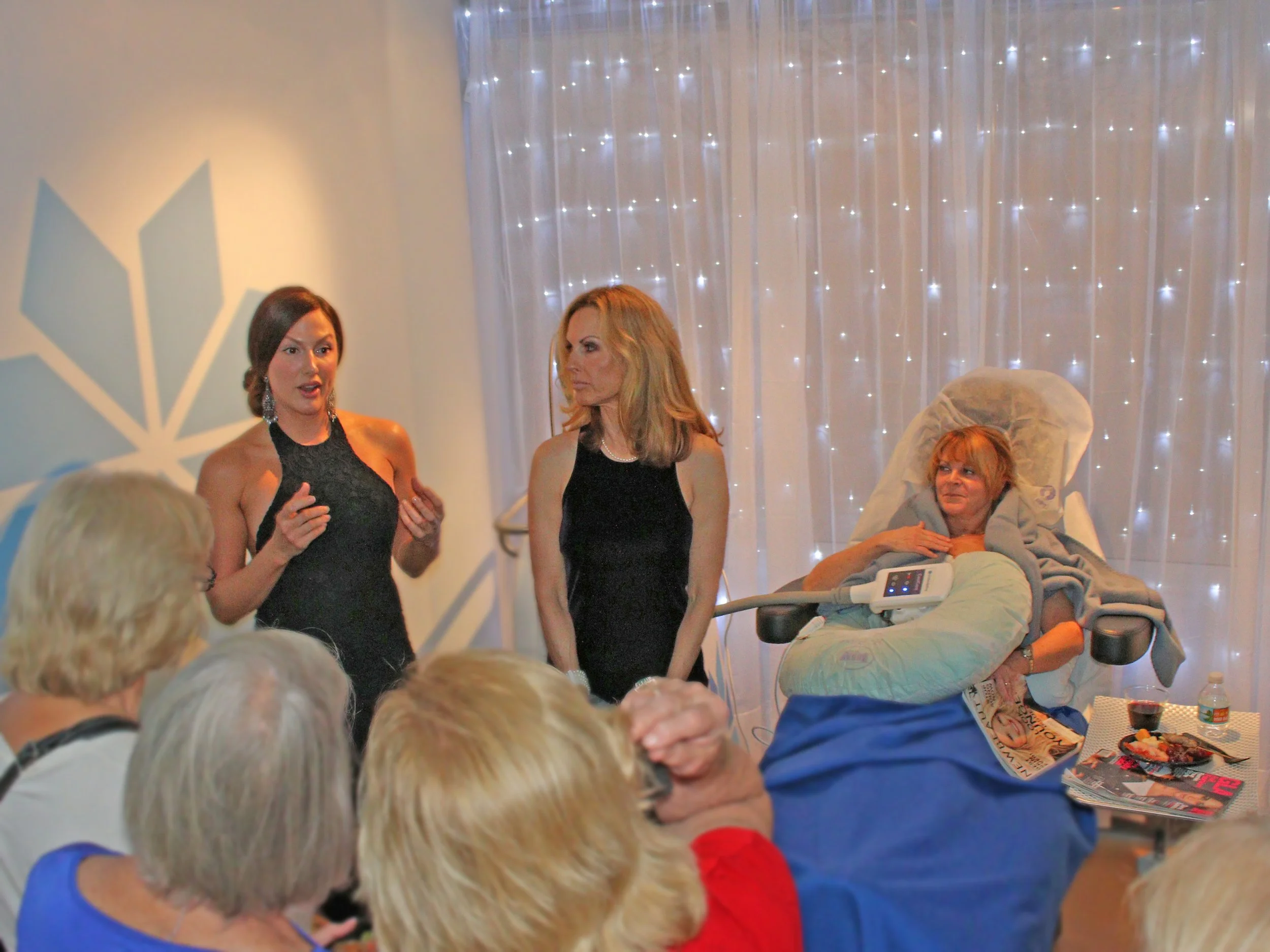 A demonstration of an absorbable thread lift at an event
