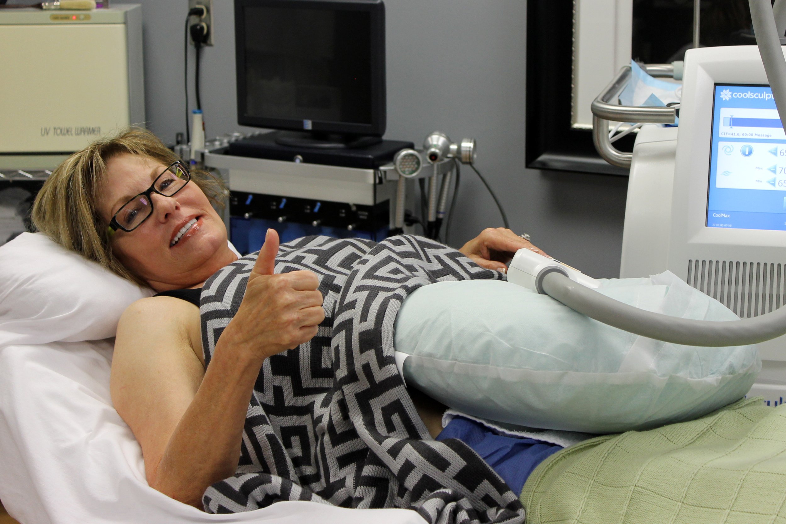 Comfortable patient during CoolSculpting treatment